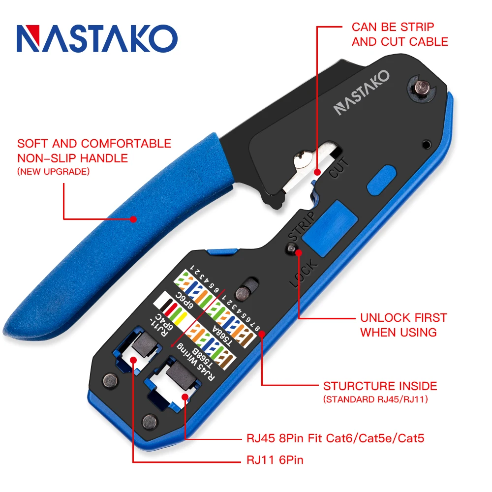. (70% Off) Comprare RJ45 Network Piegatore di Piegatura Strumenti Stripper Cutter Cavo Ethernet Fit RJ45 Cat6 Cat5e Cat5 Cat3 RJ11 RJ12 Connettore Blu Miglior Prezzo Online.