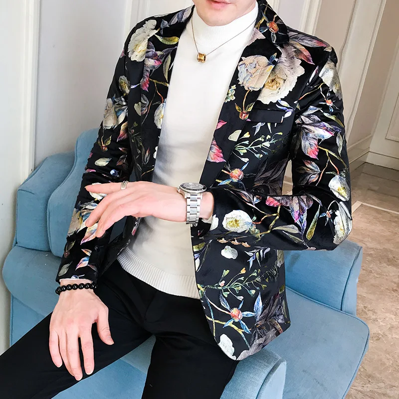 Special Offer Disegni unici Costume di Scena Smoking Blazer Uomo Slim fit Lettera stampa Floreale Suit Mens Blazer Jacket Bianco e Nero Discount 8% Today!