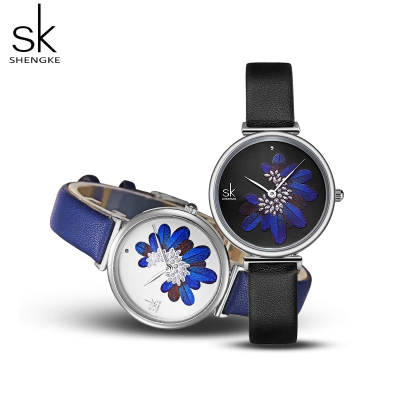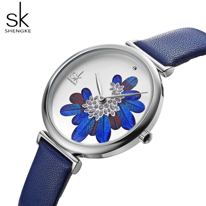 Special Offer Shengke Donne Orologi Top Brand di Lusso Della Cinghia di Cuoio Orologio Da Polso per Le Donne Blu Della Piuma Orologio Alla Moda Del Quarzo Delle Signore Della Vigilanza Discount 84% Today!
