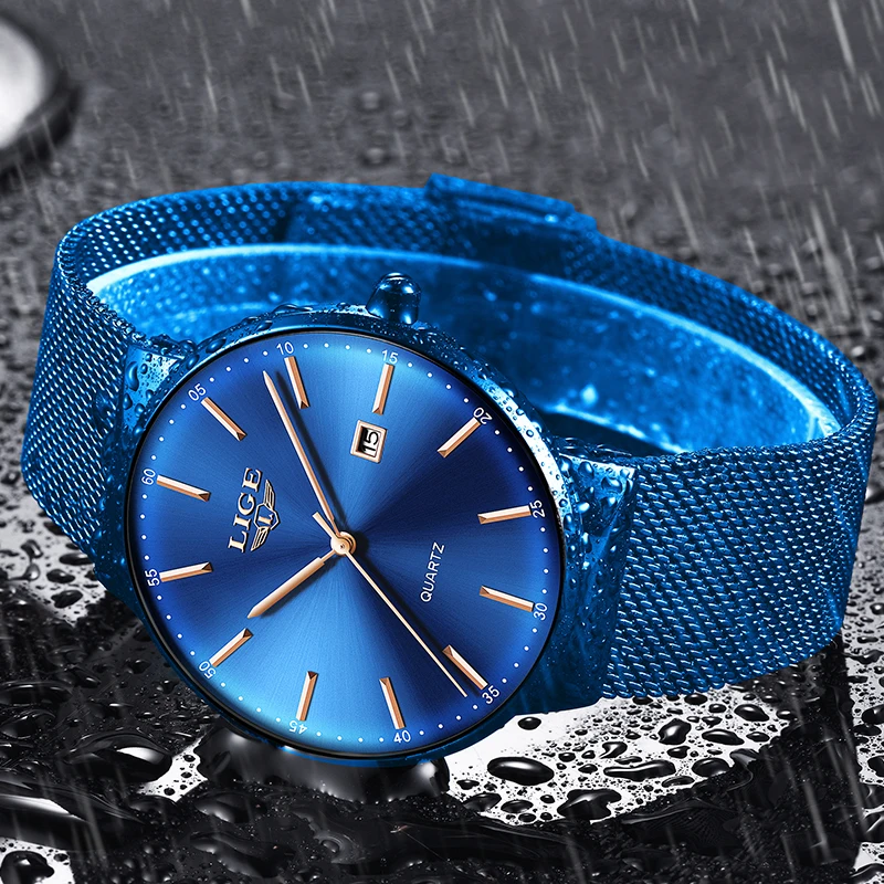 Special Offer Relogio Masculino Nuovi Mens Orologi LIGE Top di Marca di Lusso Della Vigilanza di Modo Sottile Maglia Data di Orologio Al Quarzo Impermeabile Per Gli Uomini Blu orologio Discount 90% Today!