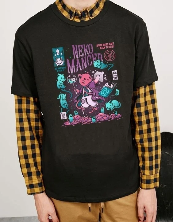 Product Name: HAHAYULE YF Neko Mancer T Shirt Unisex Carino Estetica Grunge Tee Nero Satantic Gotico Witch Abbigliamento Camicia