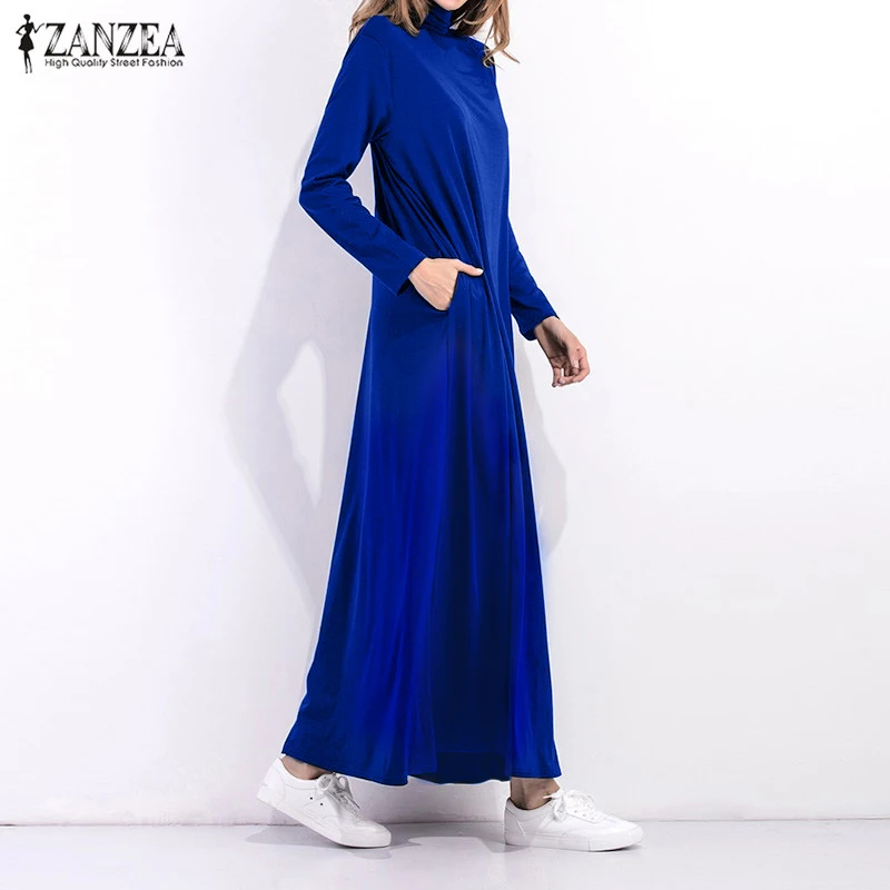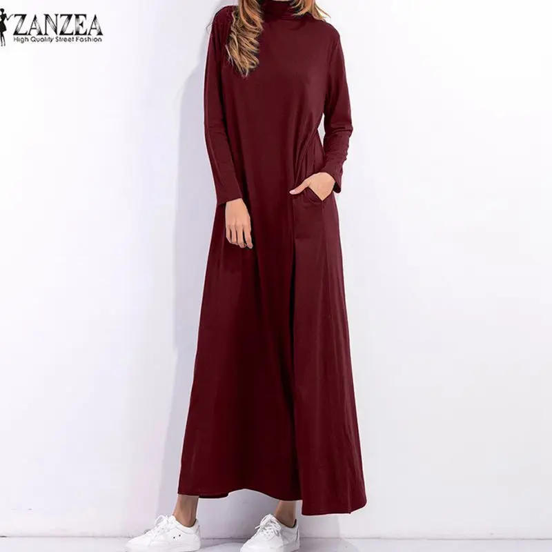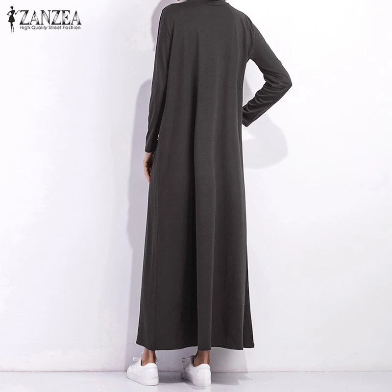 Special Offer Vestito Da autunno 2019 Maglia A Manica Lunga Dolcevita Lungo Maxi Vestiti Delle Signore Vestito Nero Allentato Tasche casual Abiti ZANZEA Discount 37% Today!