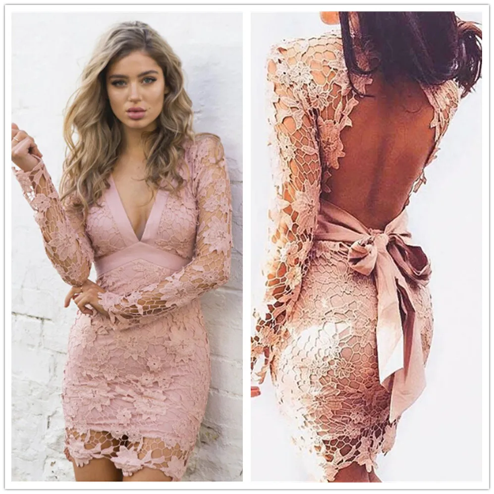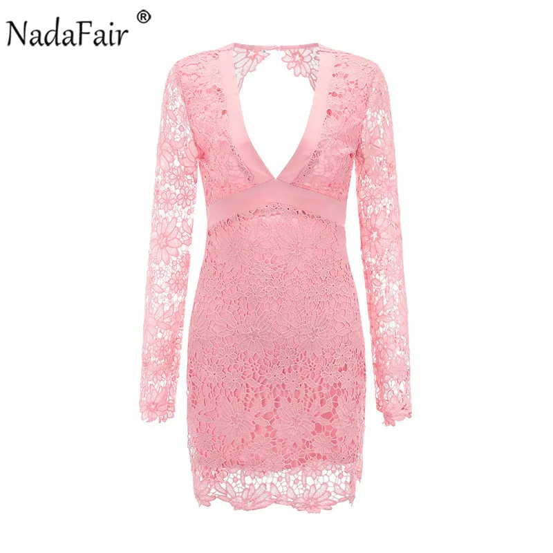 . (45% Off) Comprare Nadafair Backless Profondo Scollo A V Sexy Del Merletto Delle Donne del Vestito Nero Rosa Del Ricamo Scava Fuori A Manica Lunga Eleganti Vestiti Da Partito di Estate Economici Prezzo Online.