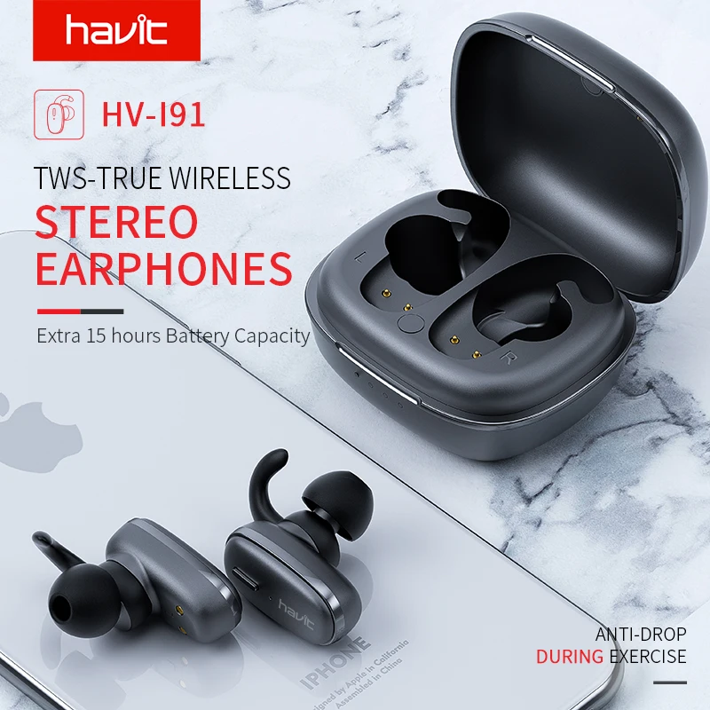 Product Name: HAVIT HV TWS 5.0 Senza Fili di Bluetooth del Trasduttore Auricolare Stereo vita Impermeabile di Sport Auricolare con doppio Microfono I91