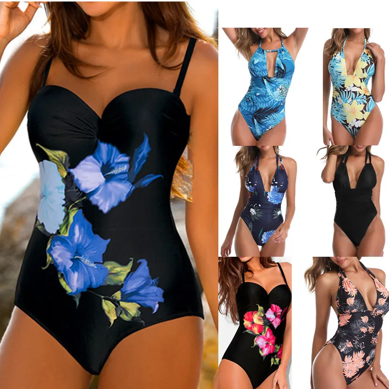 Product Name: Stampa floreale Costume Da Bagno Imbottito Vestito di Nuoto di Un Pezzo Costumi Da Bagno 2020 Donne Push Up Plus Size per la Donna Vintage Blu 2019 di grandi dimensioni XXL
