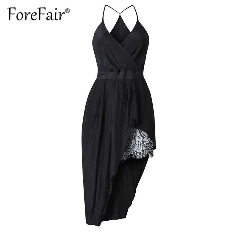 Special Offer Forefair estate Nero Sexy del Vestito delle donne vestiti 2019 senza maniche backless scollo a v wrap rappezzatura del merletto fessura della cinghia di Abiti Da Festa Discount 35% Today!
