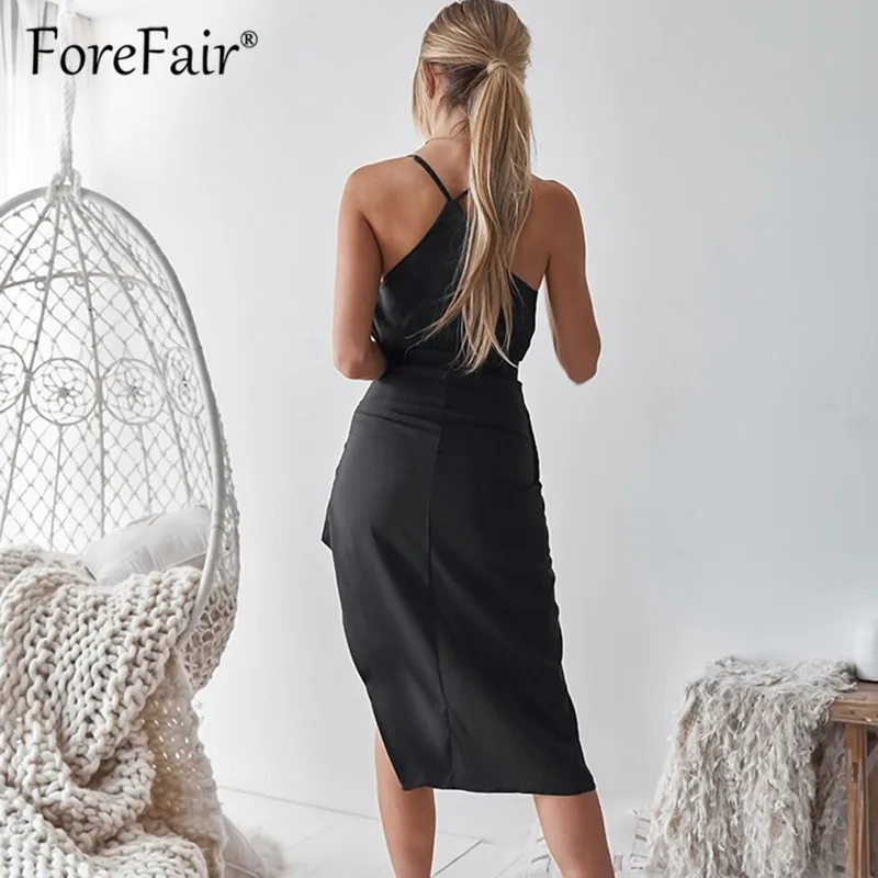 . (35% Off) Comprare Forefair estate Nero Sexy del Vestito delle donne vestiti 2019 senza maniche backless scollo a v wrap rappezzatura del merletto fessura della cinghia di Abiti Da Festa Economici Prezzo Online.