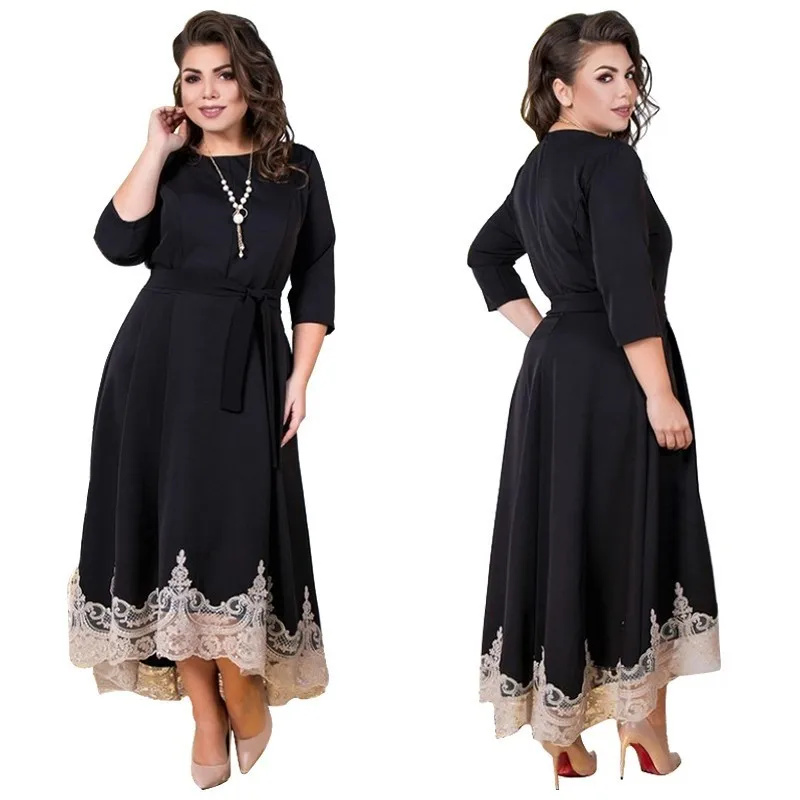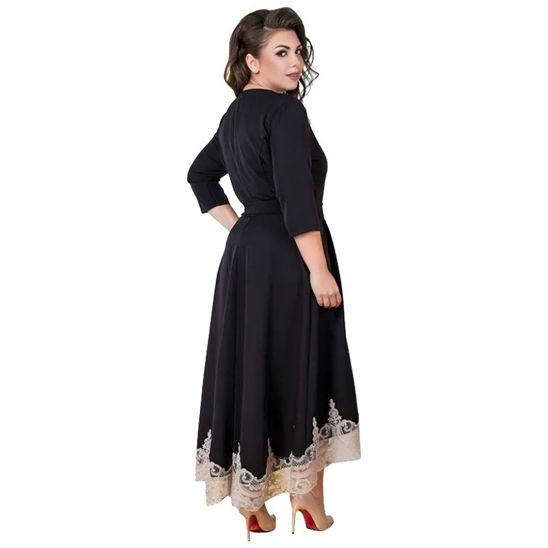 Product Name: 2019 Donne di Estate del Vestito Nero Vestito Da Partito Del Merletto Più Il Formato Vestito Lungo Di Natale Elegante Maxi Vestito 5XL 6XL di Grandi Dimensioni Vestidos