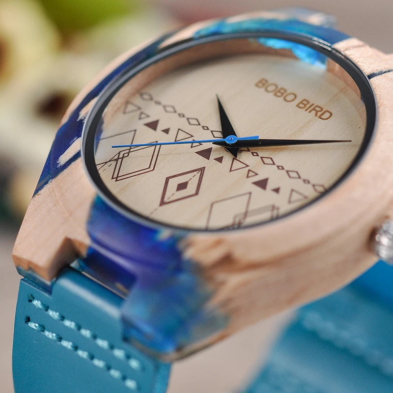 Product Name: BOBO UCCELLO Vigilanza Degli Uomini di Disegno Speciale Resina e Legno Conbined Caso di Legno Orologi Al Quarzo relogio masculino Accettare Logo