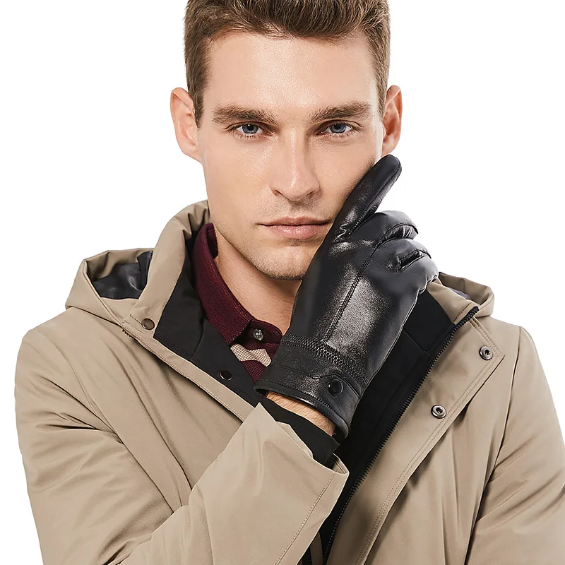 Product Name: BISON DENIM degli uomini di Guanti di Pelle di Pecora Nero Rivettata Guanti Caldi Touch Screen di Qualità Inverno Maschio Caldo Fluff Guanti S002