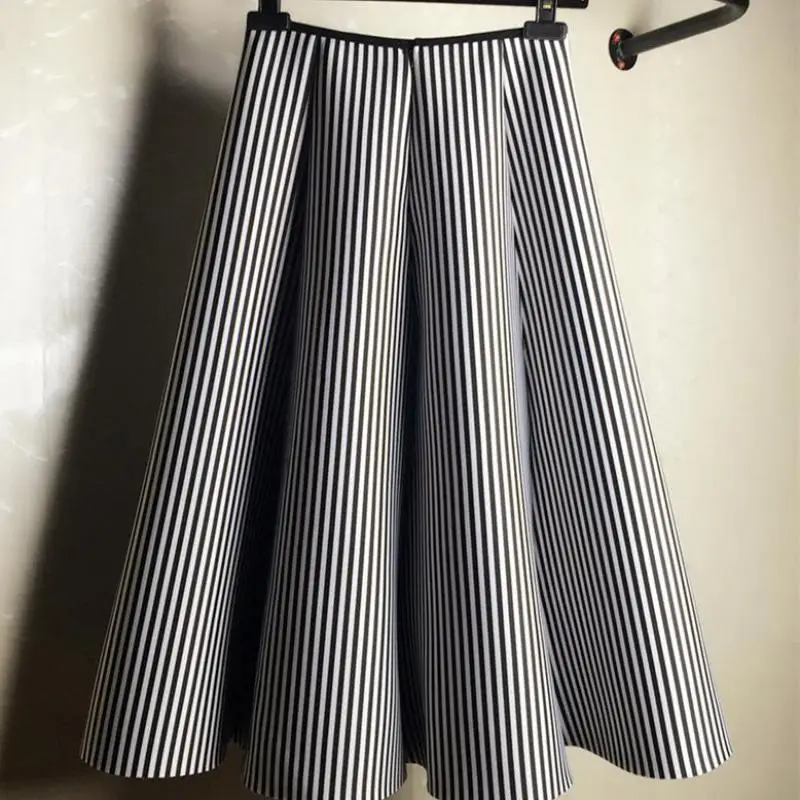 Special Offer 2019 Midi Gonna in Bianco E Nero Della Banda Verticale del Pannello Esterno del Tutu del Pannello Esterno Una Delle Donne del Cotone di Autunno E di Inverno libero di Trasporto Discount 15% Today!