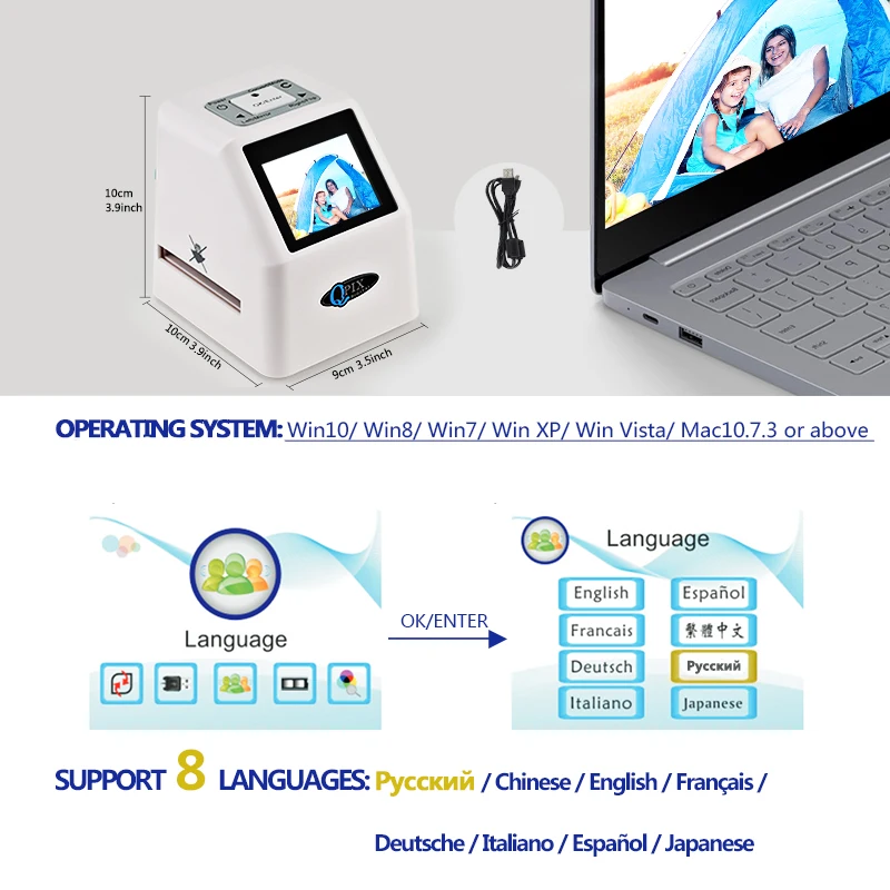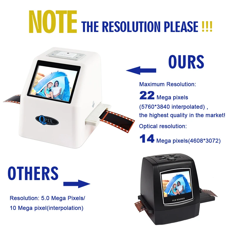 Product Name: 35 millimetri Scanner per Pellicole 22 Mega Pixel Negativo Scanner per Diapositive 110 135 126KPK Digital Film Converter con LCD da 2.4\" supporto Russo