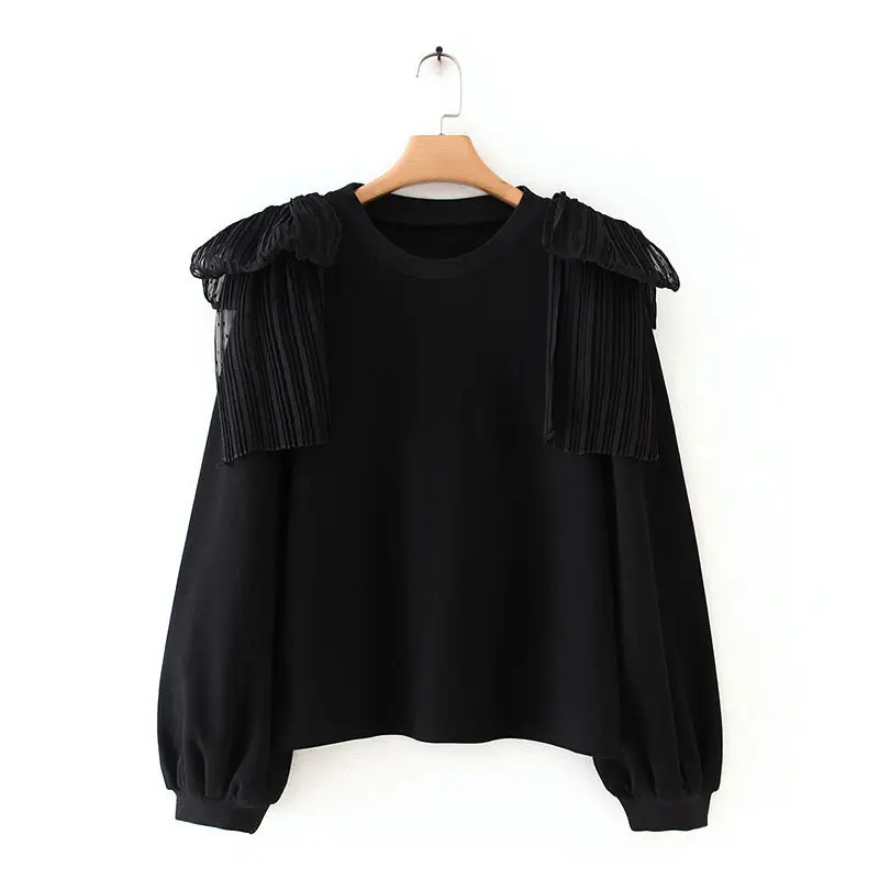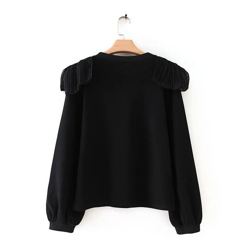 Product Name: 2019 Nuove Donne elegante fiocco di spalla legato decorazione casuale nero sweatershirts delle signore di autunno o collo del manicotto della lanterna di base con cappuccio chic appliques top H086