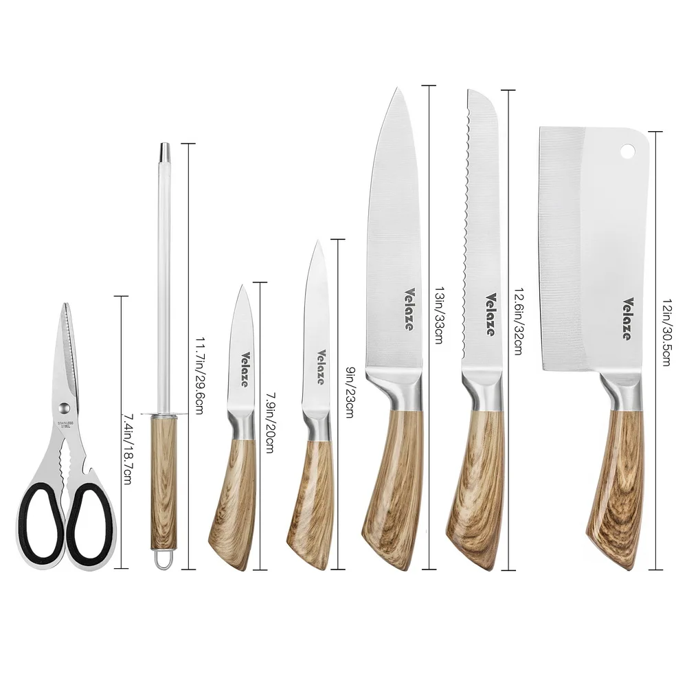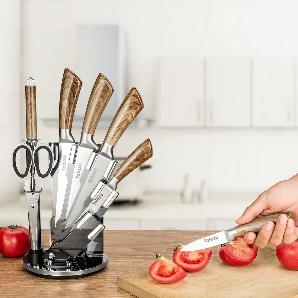 Product Name: Velaze Set di Coltelli 8 Pezzi In Acciaio Inox Set Da Cucina con Temperamatite e di Filatura Blocco di Legno di Colore