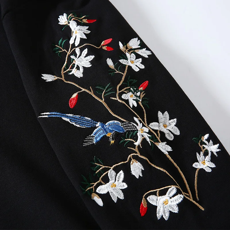 Special Offer Gli uomini Del Ricamo Con Cappuccio Felpa Con Cappuccio Fiore Uccello Cinese Allentato Casual Felpe Pullover Harajuku Coppia di Grandi Dimensioni Felpe Streetwear Discount 27% Today!