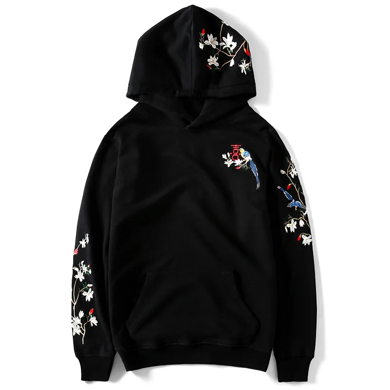 Product Name: Gli uomini Del Ricamo Con Cappuccio Felpa Con Cappuccio Fiore Uccello Cinese Allentato Casual Felpe Pullover Harajuku Coppia di Grandi Dimensioni Felpe Streetwear