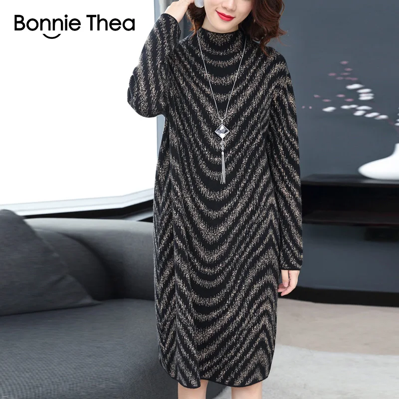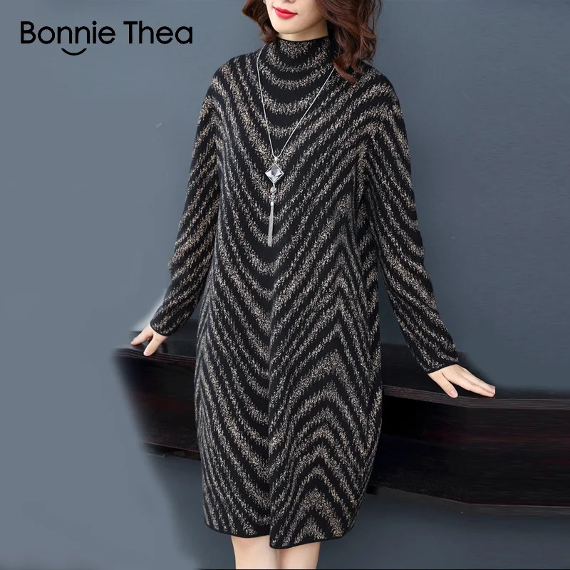 Product Name: Bonnie Thea di inverno delle donne Maglione A Collo Alto vestito femminile Elegante nero di lavoro a maglia del vestito da partito vestido signora abiti autunno 2018