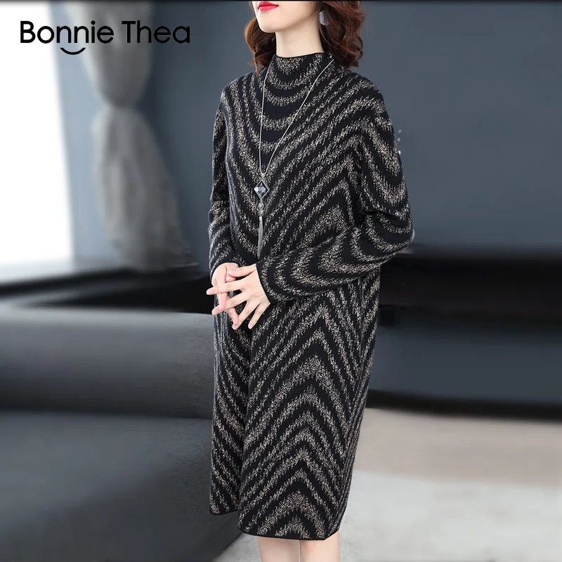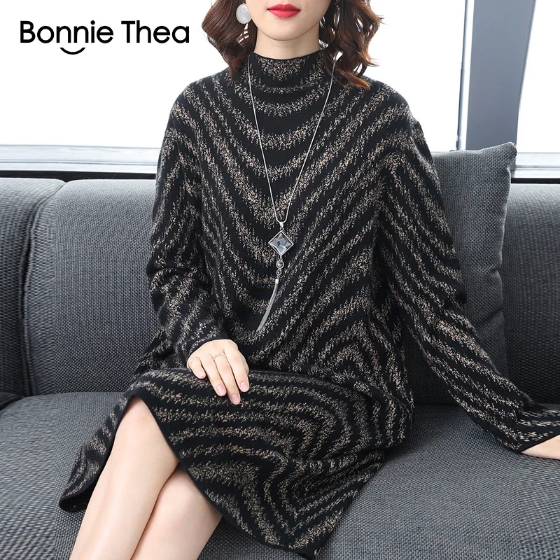 Special Offer Bonnie Thea di inverno delle donne Maglione A Collo Alto vestito femminile Elegante nero di lavoro a maglia del vestito da partito vestido signora abiti autunno 2018 Discount 30% Today!