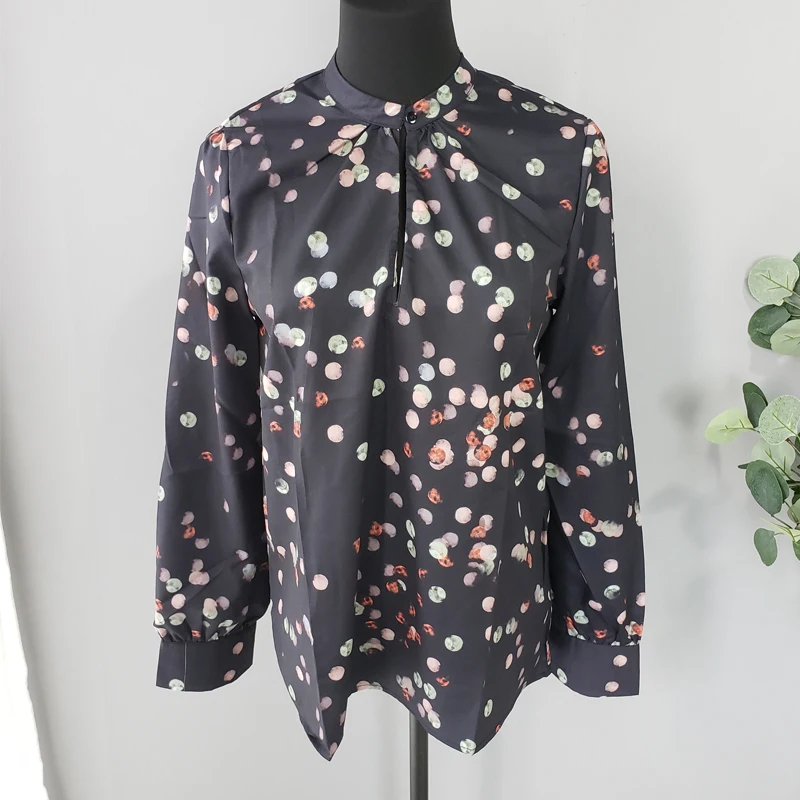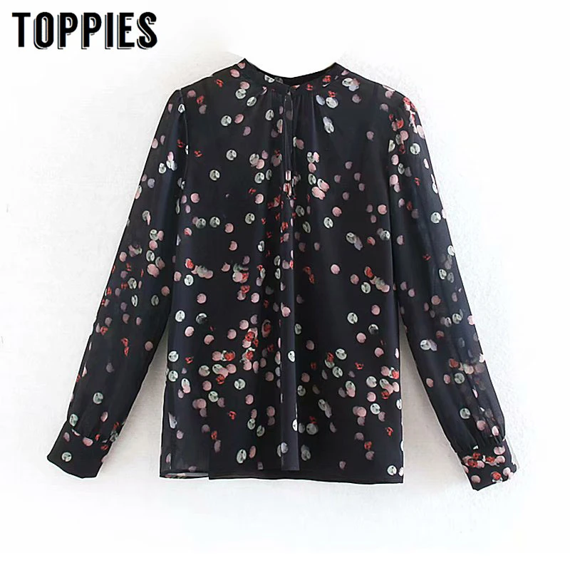 Special Offer Nero A Maniche Lunghe Delle Donne Della Camicia Multicolore del Puntino di Stampa Magliette e camicette Autunno 2019 Manica Lunga O Collo Magliette e camicette blusas mujer Discount 30% Today!