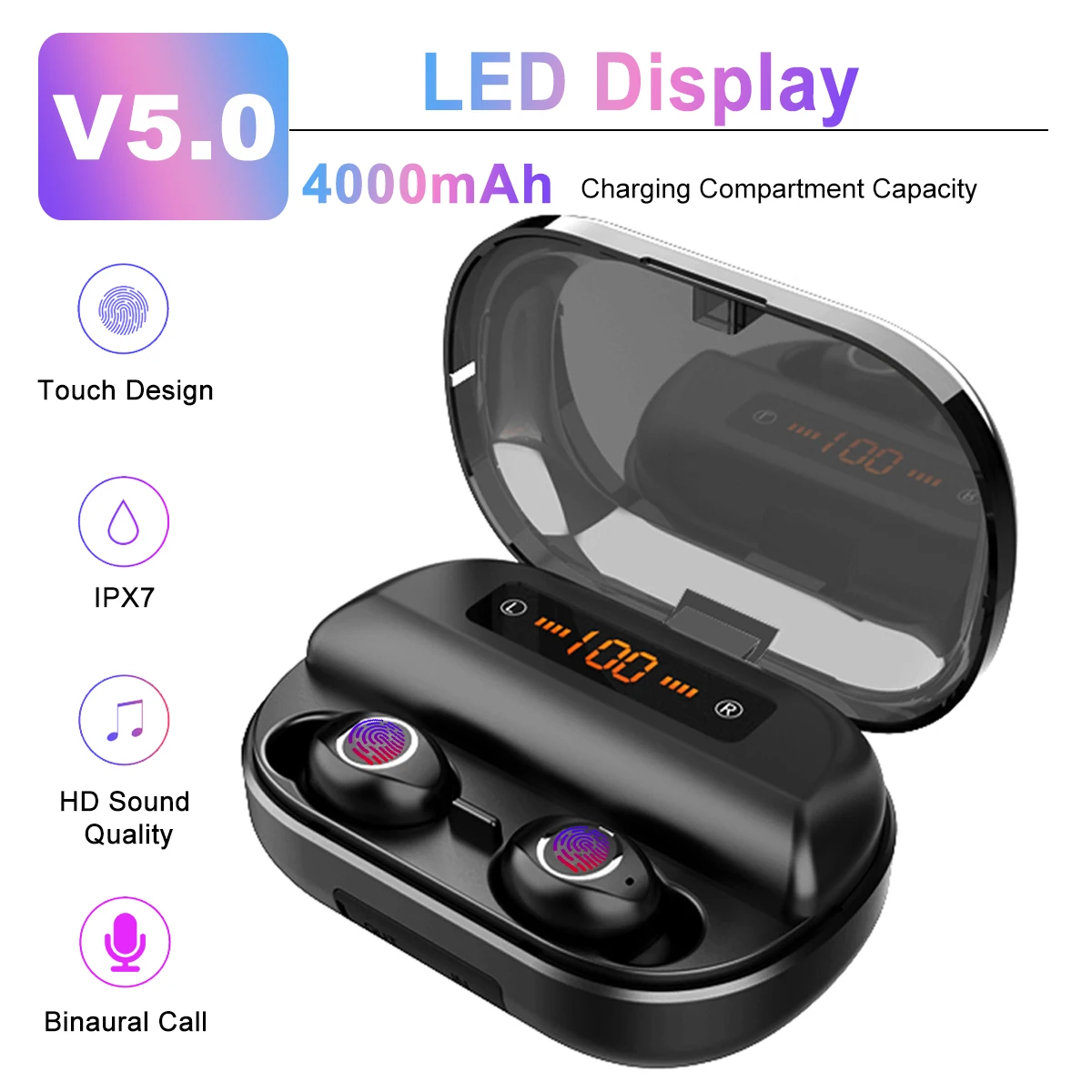 Product Name: Display A LED bluetooth 5.0 Auricolare 2000 mAh 3600 mAh 4000 mAh Accumulatori e caricabatterie di riserva TWS Impermeabile Senza Fili di Sport Auricolari Stereo auricolare