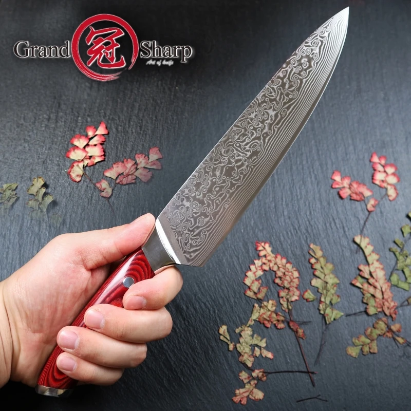 Special Offer GRANDSHARP 67 Layers Giapponese di Damasco Della Lama di Damasco Chef Coltello 8 Pollici VG 10 Lama di Damasco Coltello Da Cucina Manico Pakka PRO Discount 50% Today!