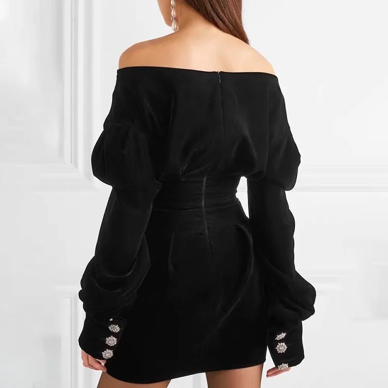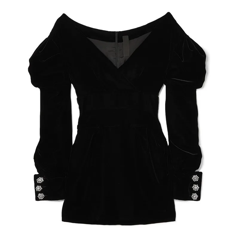 Special Offer TWOTWINSTYLE Off Velluto Spalla Vestito Da Partito Delle Donne Puff Manica Lunga Nero Mini Abiti Donna di Grandi Dimensioni Sexy di Modo di Autunno 2019 Discount 55% Today!