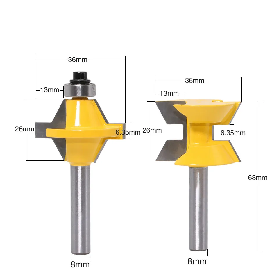 Product Name: 2 Pcs 8 millimetri \"Shank Router Bit Set 120 Gradi Lavorazione Del Legno Scanalatura Scalpello Cutter Strumento