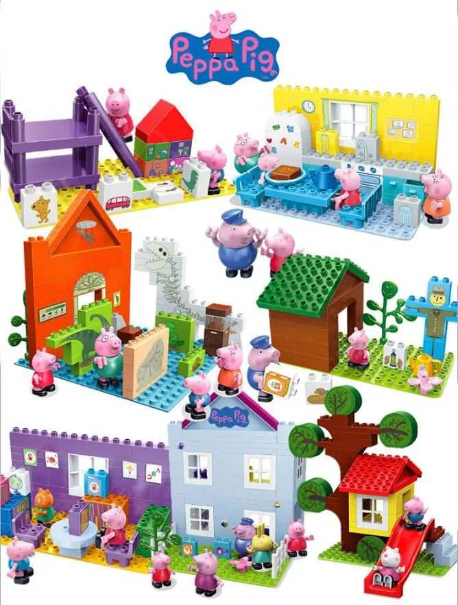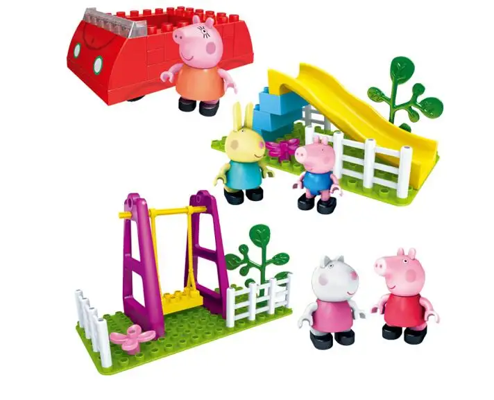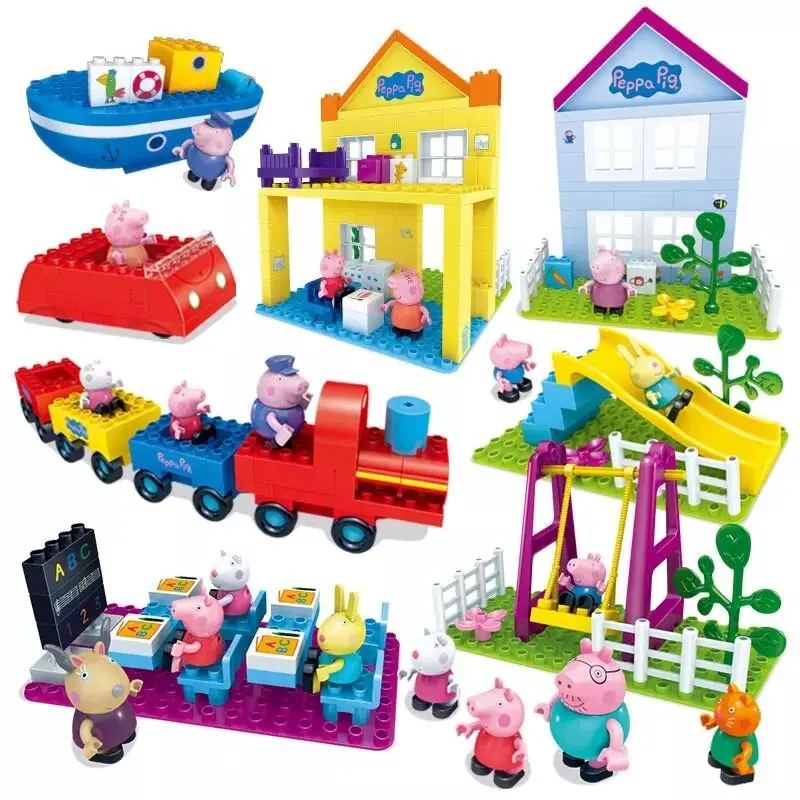 Product Name: Di lusso Genuino del Maiale di Peppa Building Blocks Set altalena scivolo rosso auto barca aula gioco treno casa Del Museo dei bambini di Compleanno del giocattolo