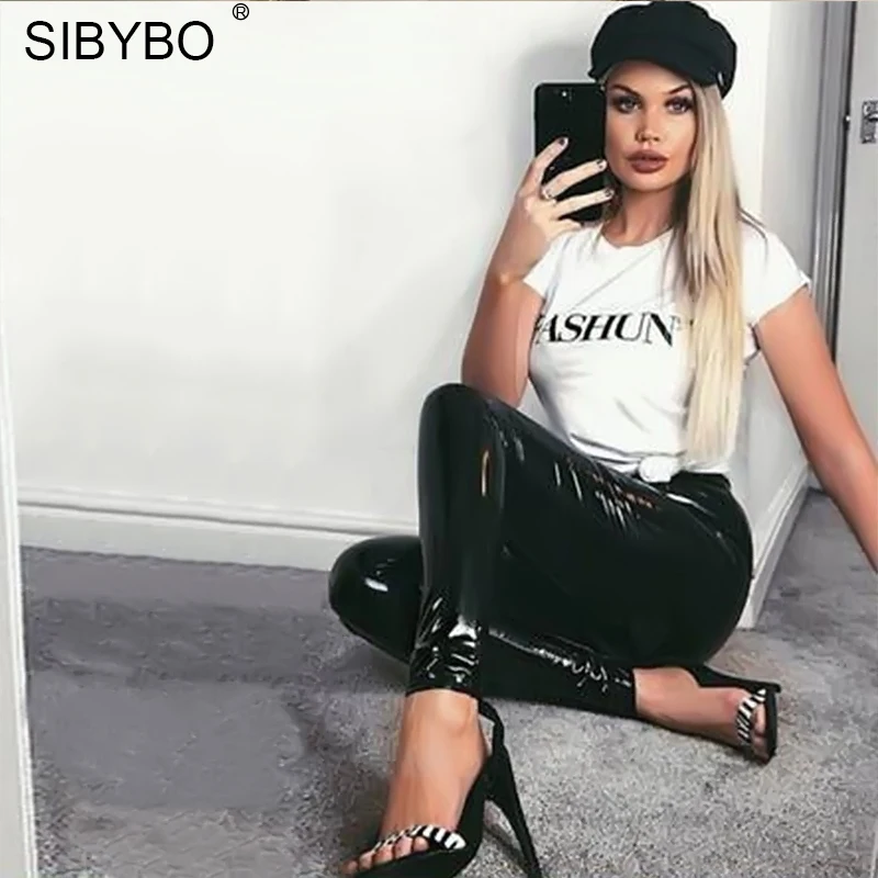 Special Offer Sibybo Vita Alta In Pelle PU casual Pantaloni Delle Donne di Autunno Nuovo Pulsante Fly Skinny Pantaloni Della Matita Nero Sexy Delle Donne Pantaloni Pantaloni Discount 37% Today!