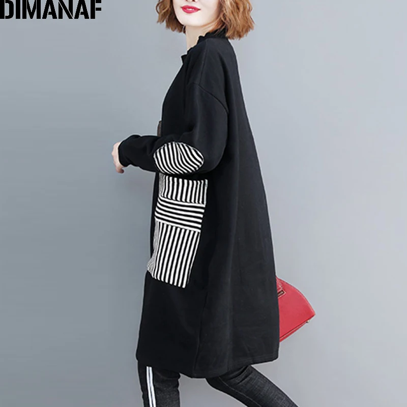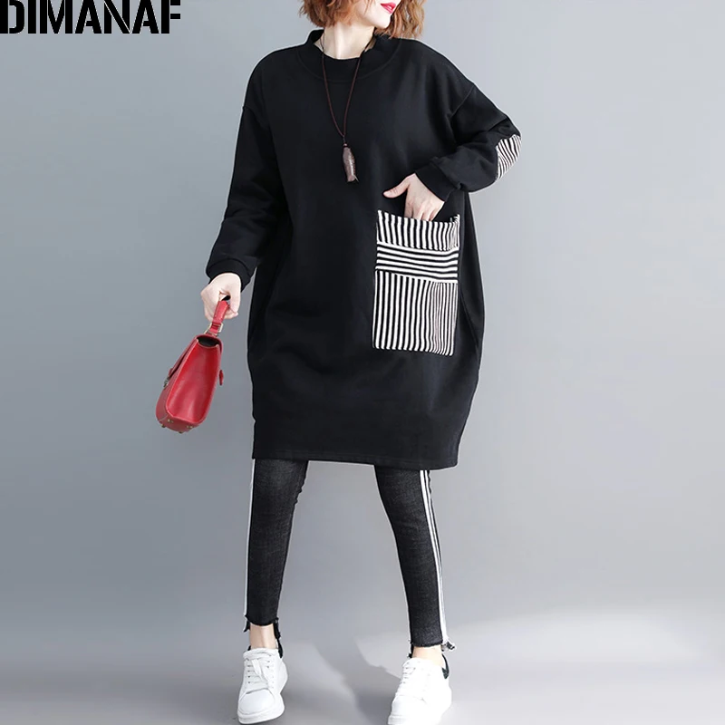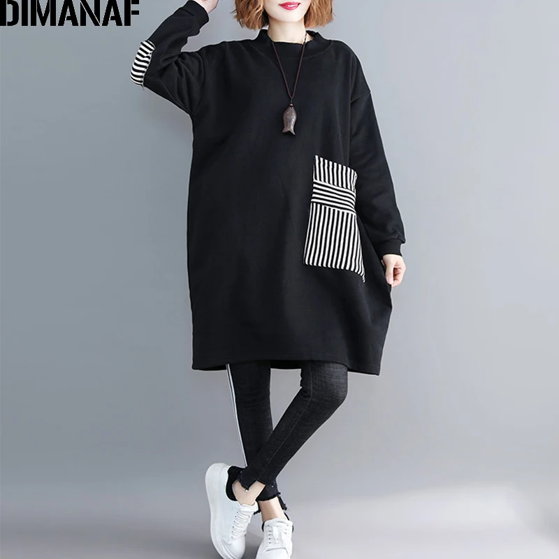Special Offer DIMANAF Delle Donne Più Il Formato Felpe Felpe Addensare Abiti Femminili Pullover Vintage Top Nero Della Rappezzatura Allentata 2019 Autunno Inverno Discount 45% Today!