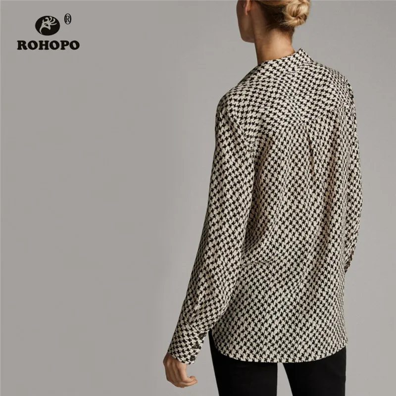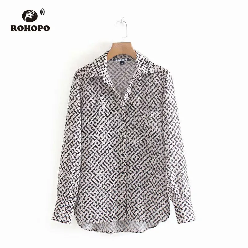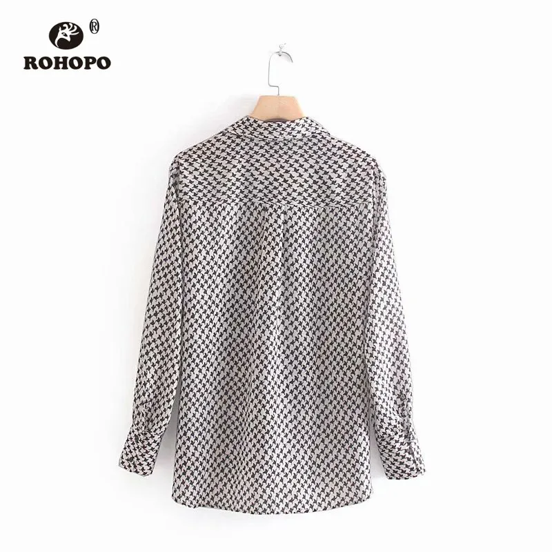Special Offer ROHOPO NERO Pied De Poule Manica Lunga Alto Basso Camicetta Tasca Laterale Del Manicotto Della Lanterna Delle Signore Chic Plaid Top Risvolto colletto Della Camicia #9014 Discount 5% Today!