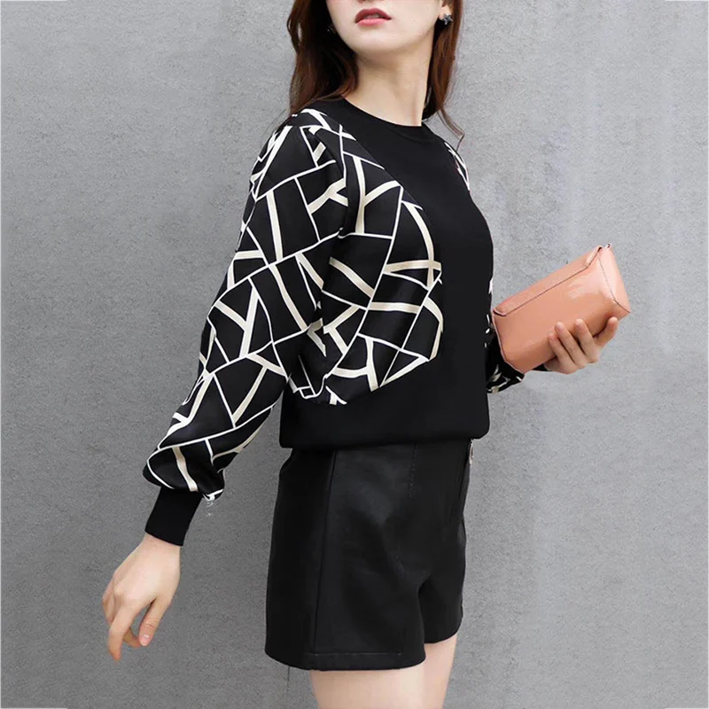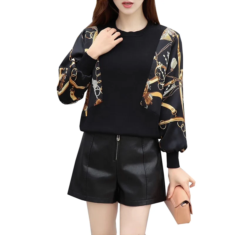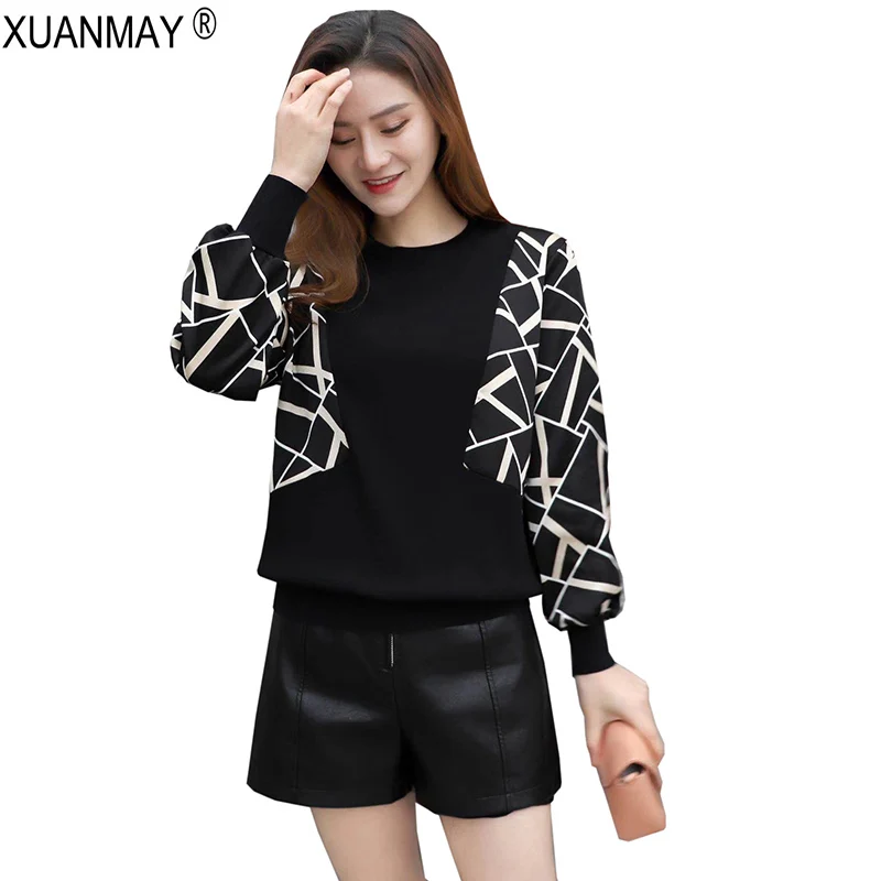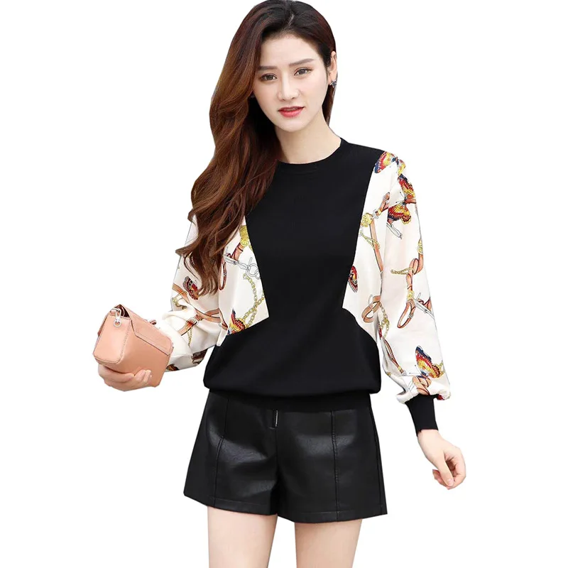 Product Name: 2019 di Disegno di Marca Casual Pullover Maglione donne della Molla del merletto di cucitura Maglione Maglia Elegante della stampa del leopardo Nero di Lavoro A Maglia Top