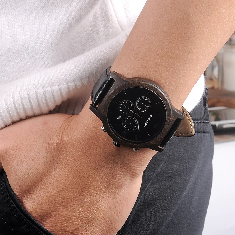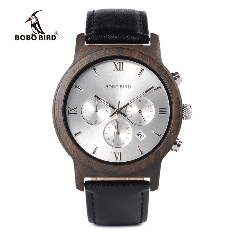Product Name: BOBO UCCELLO WP28 di Legno Degli Uomini di Orologi di Lusso Cronografo resistenza all acqua Orologio Al Quarzo Data di Visualizzazione degli uomini di Regalo in Legno Regalo box