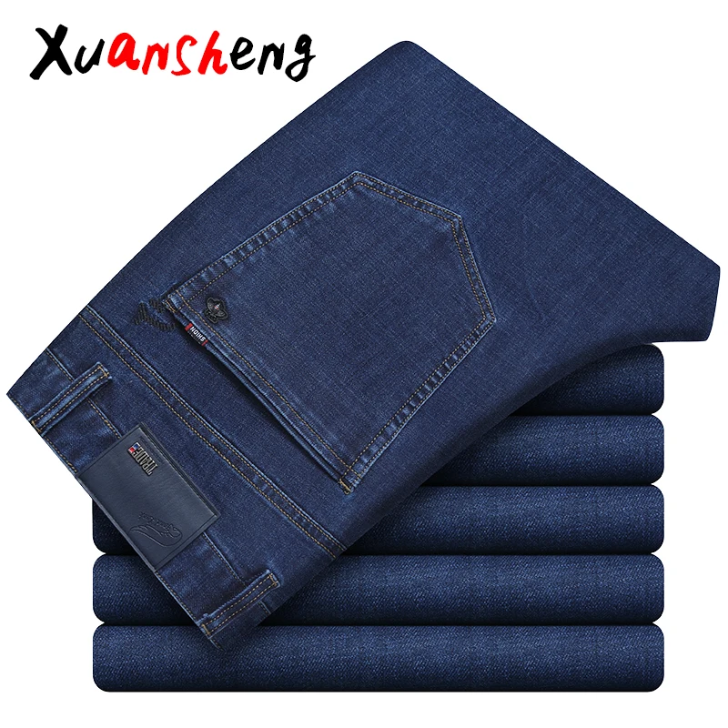 Special Offer Xuan Sheng di stirata dei jeans degli uomini di 2019 diritto allentato grande formato classico di marca casuale a vita alta degli uomini di colore blu pantaloni lunghi dei jeans Discount 54% Today!