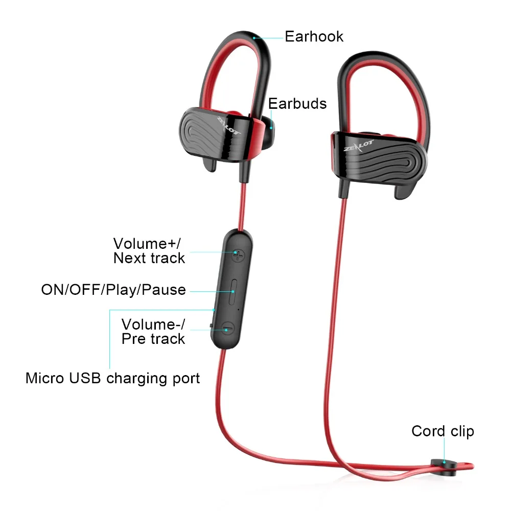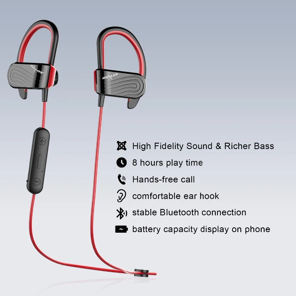 Product Name: ZEALOT H12 Cuffie Senza Fili di Sport di Bluetooth 4.2 Auricolare Impermeabile Auricolari Bassi Auricolare Bluetooth con il mic per il Telefono