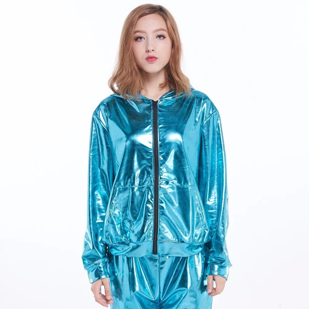 Product Name: Nuova Primavera Autunno Bambini Audlt Jazz bomber Giacca Usura di Prestazione Della Fase di acqua blu paillette feminina casaco danza Hip Hop cappotto