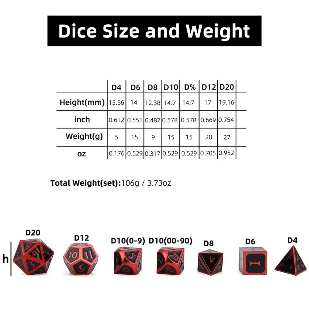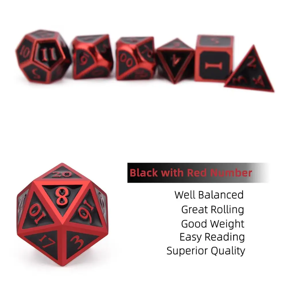 Product Name: Mistero di Metallo Dadi Rosso e Nero per Dungeons And Dragons RPG MTG Insegnamento di Matematica D4 D6 D8 D10 D % d12 D20