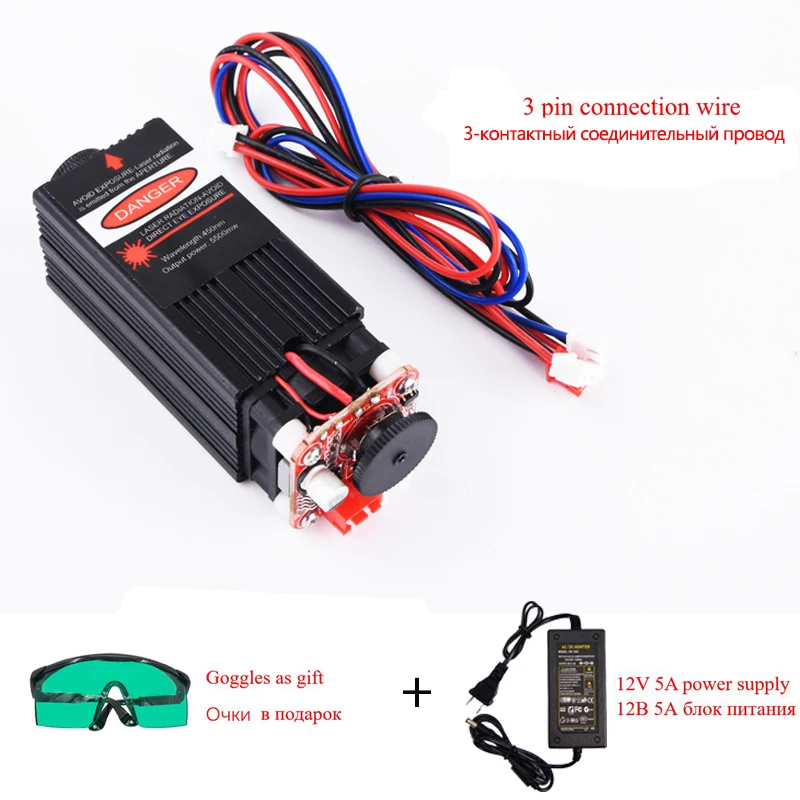 Special Offer 5.5w 450nm blu modulo laser, laser incisione di parti di macchine, taglio laser TTL modulo 5500mw tubo del laser + occhiali Discount 30% Today!