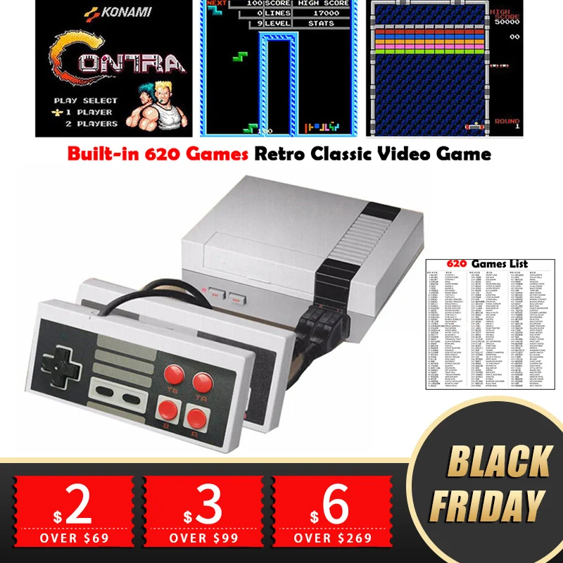 Product Name: (US UK Spina di UE) uscita AV Retro Classic Video Console di Gioco Built In 620 Giochi 8 Bit TV Famiglia palmare gioco Doppio Gamepad