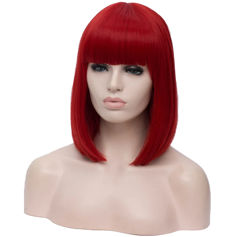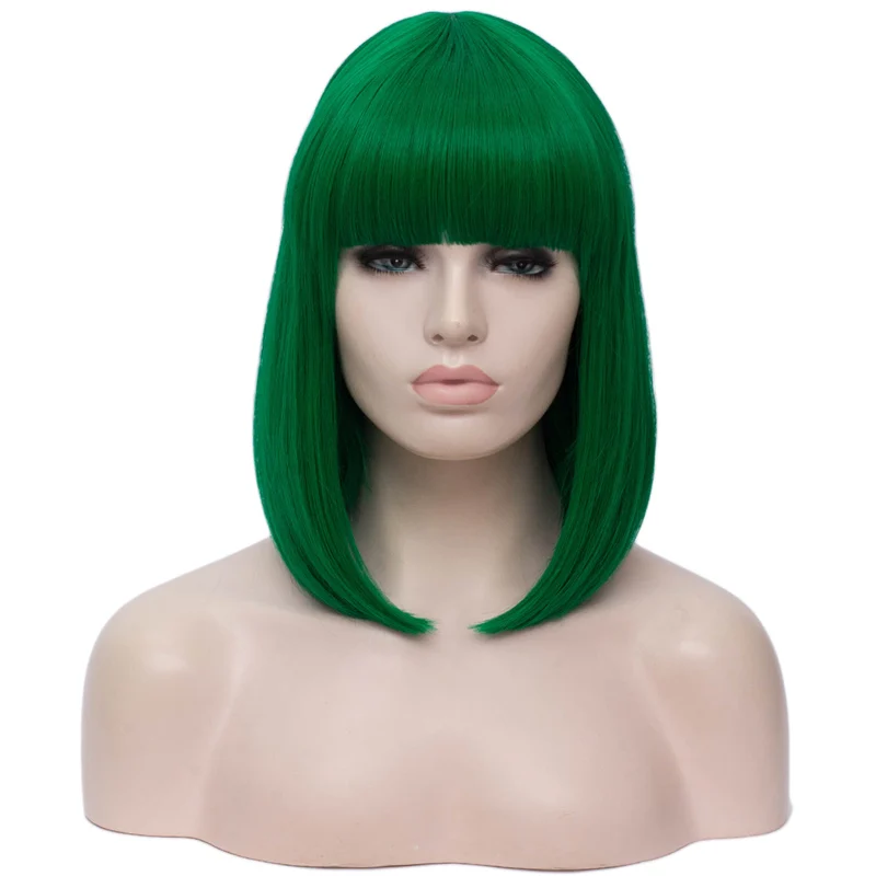 Product Name: MSIWIGS Sintetica 14 pollici Lisci Corti Bob Parrucche Frangia Blu Oro Rosso Nero Bianco Viola Verde Marrone Cosplay Parrucca Femminile