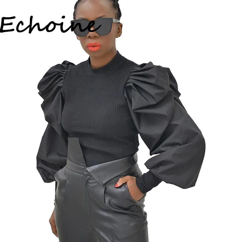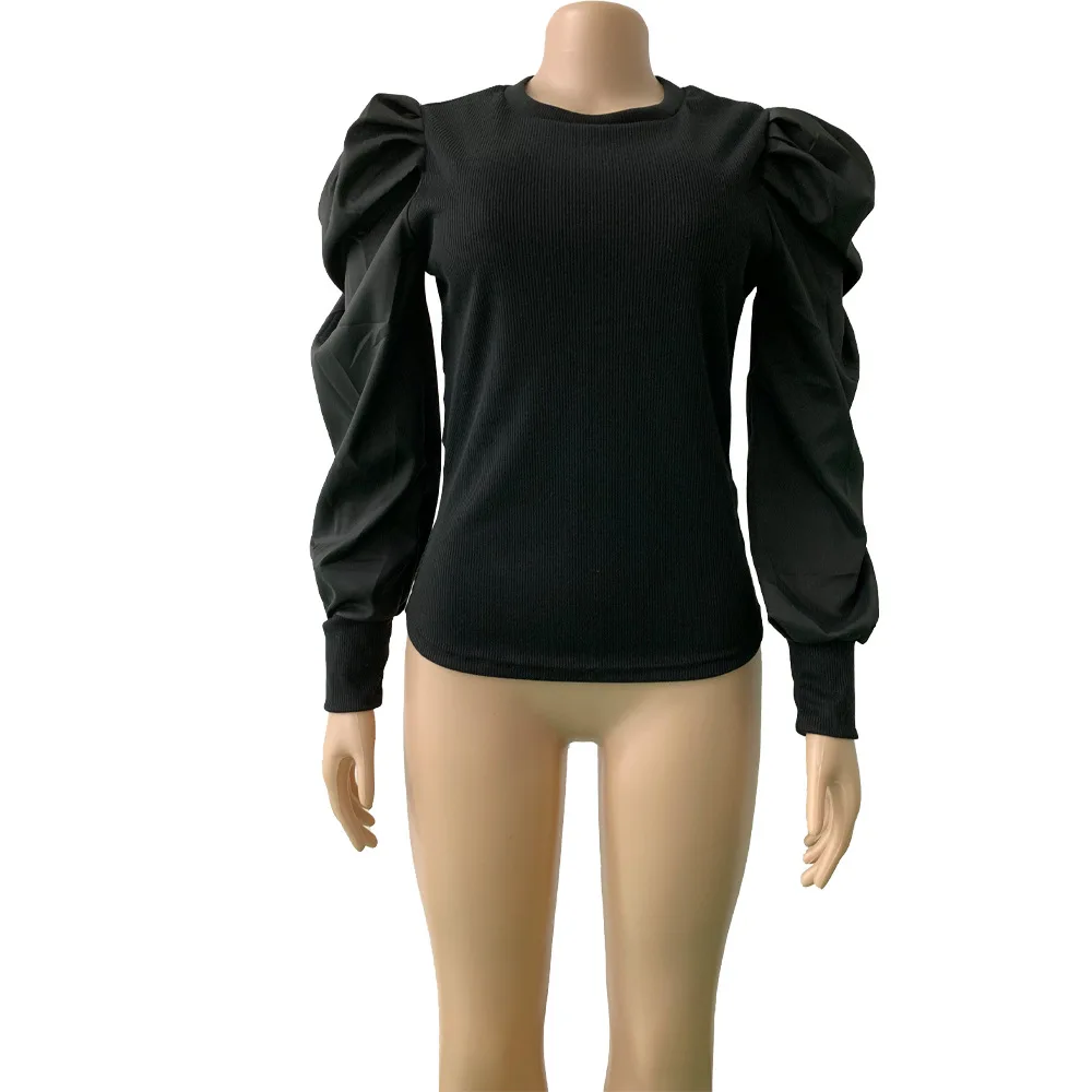 Product Name: Delle Donne di modo Camicetta Camicia Del Manicotto di Soffio Camicetta Shirt Vintage Dell ufficio Della Signora Delle Donne di Colore Solido Lavorato A Maglia Elegante Femme Più Il Formato