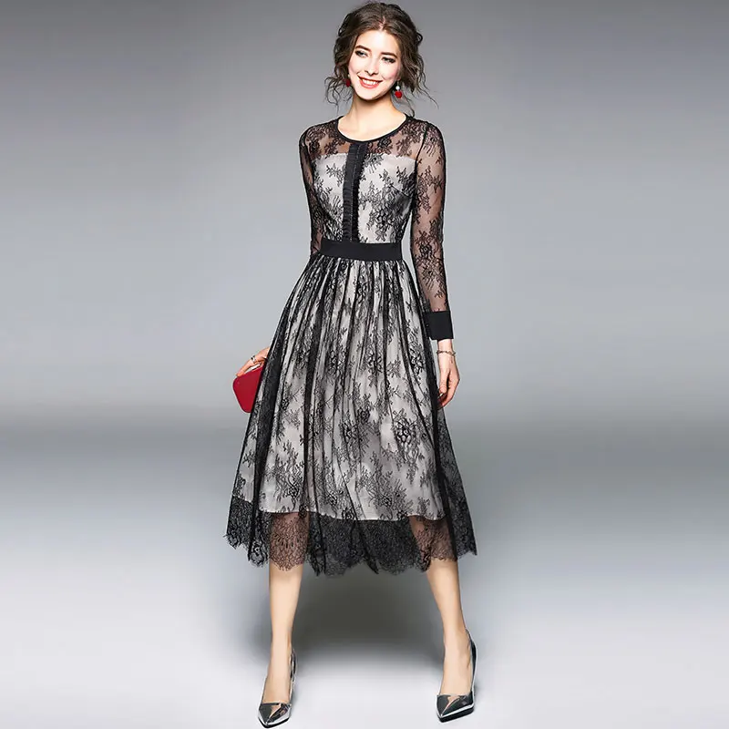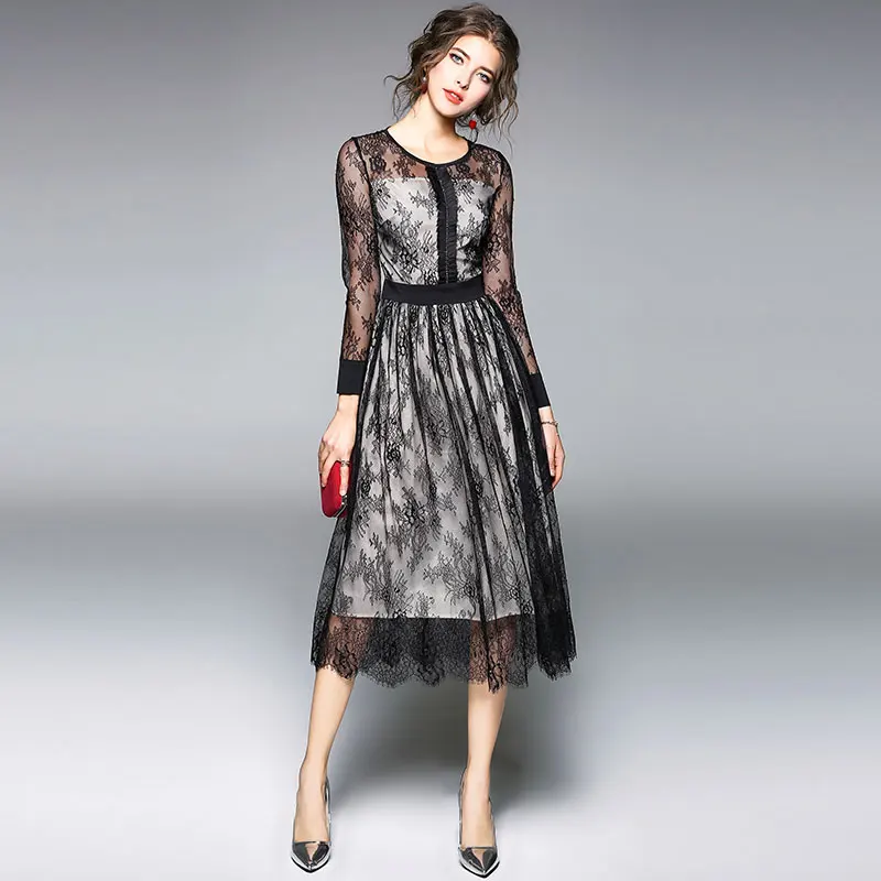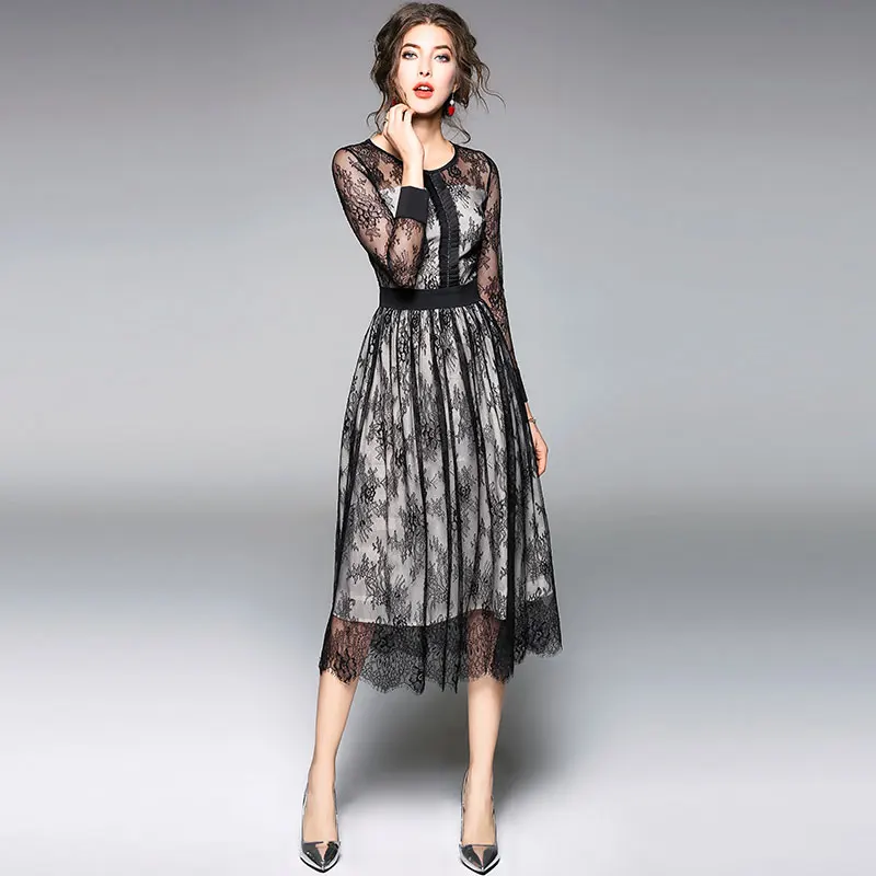 Product Name: Borisovich di Lusso Nero Del Merletto Del Vestito Delle Donne di Nuovo Arrivo 2018 di Modo della Molla O Collo Sottile Elegante Da Sera Delle Signore Vestiti Da Partito M086