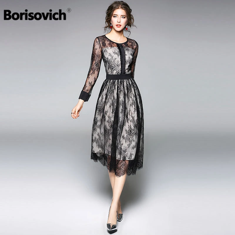 Special Offer Borisovich di Lusso Nero Del Merletto Del Vestito Delle Donne di Nuovo Arrivo 2018 di Modo della Molla O Collo Sottile Elegante Da Sera Delle Signore Vestiti Da Partito M086 Discount 45% Today!