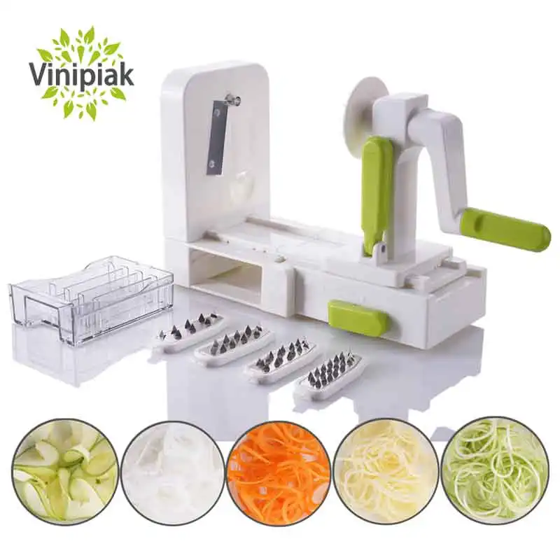 Product Name: Pieghevole 5 Lama di Verdure Spiralizer Veggie Pasta Spaghetti di Verdure A Spirale Affettatrice Carota Zucchine Noodler Maker Zoodle Maker