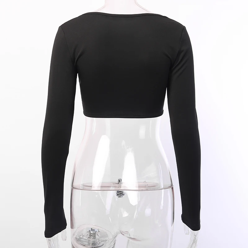 Product Name: InsGoth Nero A Manica Lunga Donna Top Crop Punk Gotico Sexy Short Top Della Chiusura Lampo Della Rappezzatura Aderente Top Autunno Femminile Streetwear Tshirt