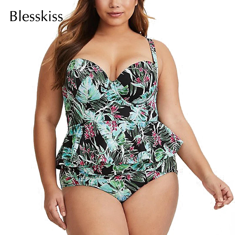 Special Offer Blesskiss 2019 Push Up Bikini Plus Size Costumi Da Bagno di Grandi Dimensioni Delle Donne Volant Costume Da Bagno A Due Pezzi A Vita Alta Swim Bathinig Vestito Con pannello esterno Discount 56% Today!