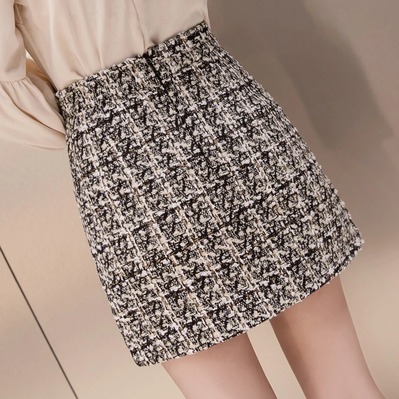 Product Name: Nero gonna di tweed delle donne 2019 autunno inverno coreano elegante jupe femme plaid Gonne e Pantaloni Per Le Signore di A Line Dei Sequins Breve Mini Gonne