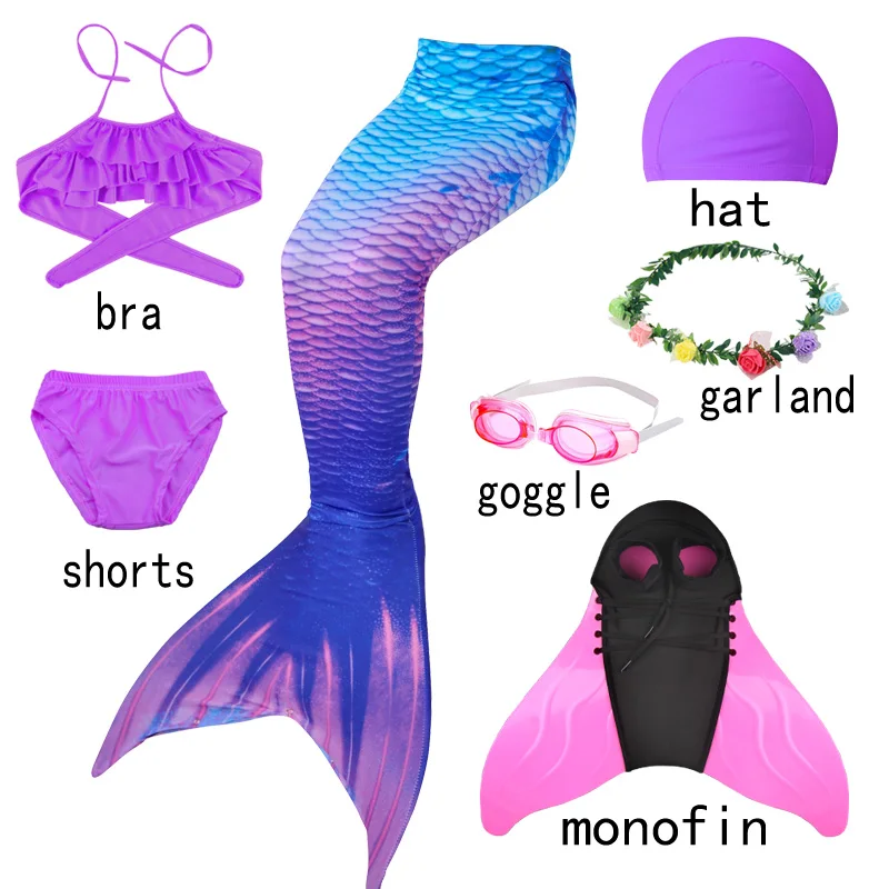 Product Name: Halloween Bambini Costume Da Bagno Bikini Flipper Sirena Code shorts top per il Nuoto Della coda Della Sirena monofin Costumi Delle Ragazze di Nuoto