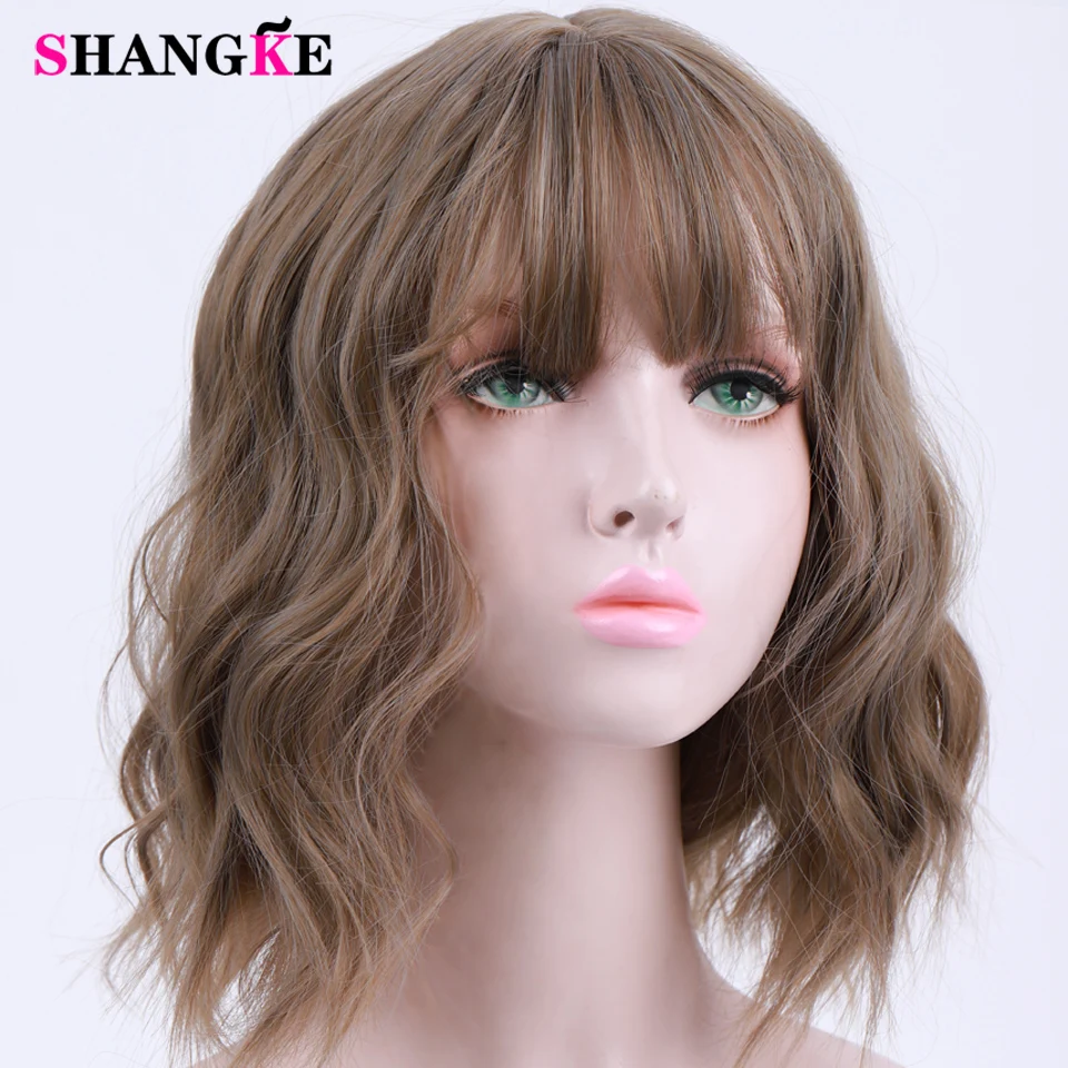 Product Name: SHANGKE Breve Ricci BOB Parrucche Delle Donne di Colore Marrone Nero Biondo Parrucche di Capelli Naturali Femminile Sintetica Resistente Al Calore In Fibra di