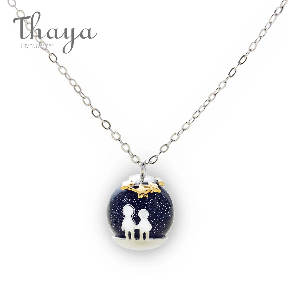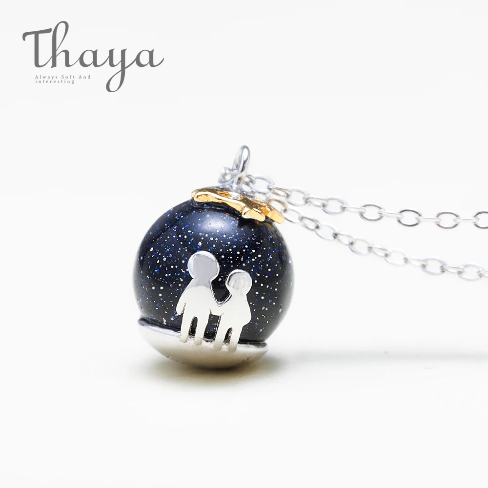 Product Name: Thaya Del Partito Blu di Ghiaia Pietra di Gemma Pendente di S925 Bambini Infanzia Collana In Argento Sterling Per Le Donne Chic Regalo Unico